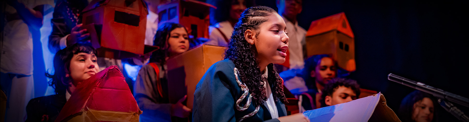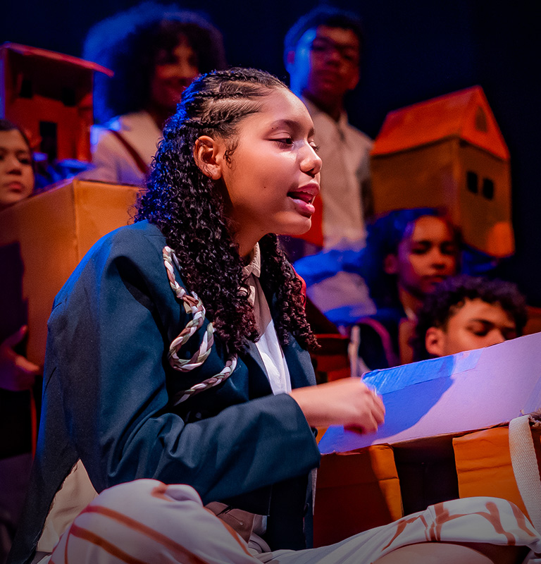 O Projeto Espetáculo é uma experiência coletiva que reúne cerca de 50 aprendizes para a construção de uma obra cênica. Desenvolvem de forma integrada e participativa todas as etapas e especificidades que compõem o processo criativo no campo cênico, sempre com a condução de educadores e profissionais especializados.