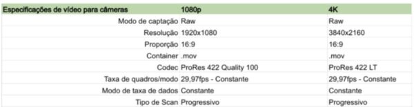 As produtoras selecionadas terão o prazo de até 25 (vinte e cinco) dias úteis, a contar da assinatura do Termo de Compromisso com a APAA, para a realização e finalização do videoclipe. os videoclipes deverão ser captados e entregues segundo as descrições técnicas listadas na tabela abaixo: