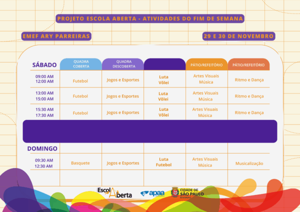 Confira a programação na EMEF – Ary Parreiras, para o próximo fim de semana.