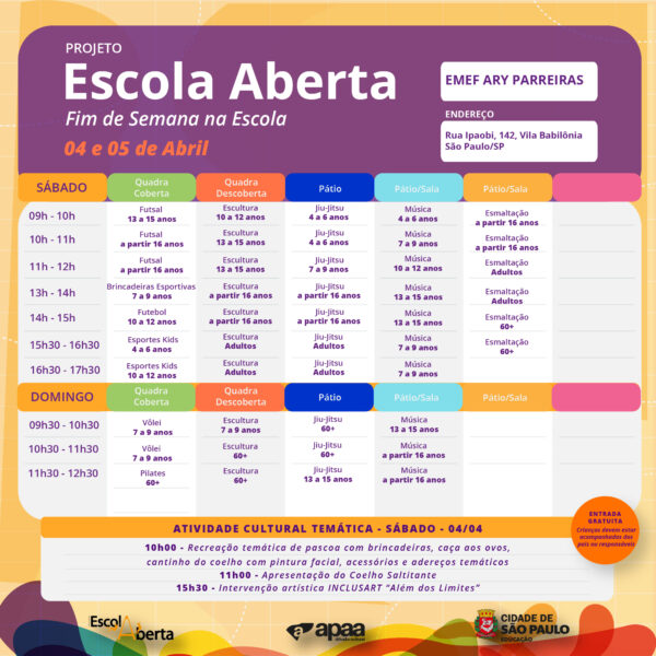 Confira a programação na EMEF – Ary Parreiras, para o próximo fim de semana.