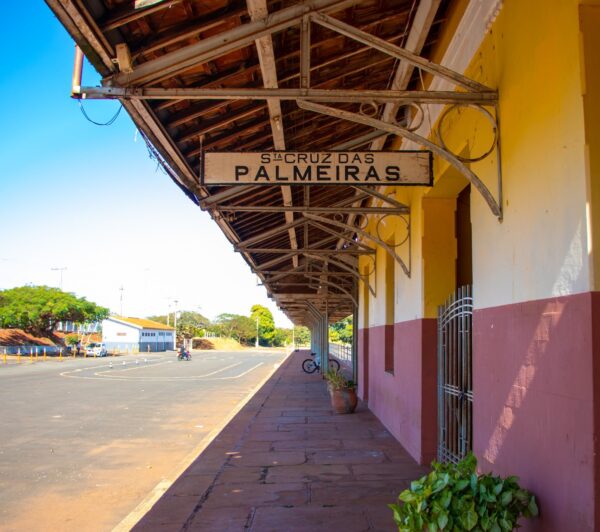 A antiga Estação Ferroviária de Santa Cruz das Palmeiras foi inaugurada em 1892 como ponta de linha provisória do ramal de Santa Veridiana, a cerca de um quilômetro do centro da vila que lhe deu o nome. Em 1911, era um ponto de grande tráfego e, dois anos depois, com a construção da próxima estação de Baldeação, que possibilitava a ligação do ramal com o tronco da Mogiana, teve ainda mais movimento. Em 1968, com a desativação do trecho entre Palmeiras e Baldeação, a estação passou a ser o ponto final do agora chamado ramal de Santa Cruz das Palmeiras. Porém, por pouco: em 1976, a linha foi desativada e a estação fechada. O prédio se conservou, sendo hoje utilizado como centro cívico e cultural da cidade.
